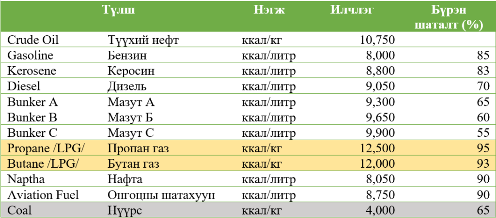 LPG хий нь молекулын бүтэц энгийн бөгөөд хүчилтөрөгчтэй бүрэн урвалд ордог тул: